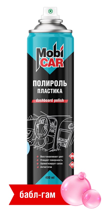 Полироль пластика глянцевый MobiCAR, 400 мл, бабл-гам 12шт.