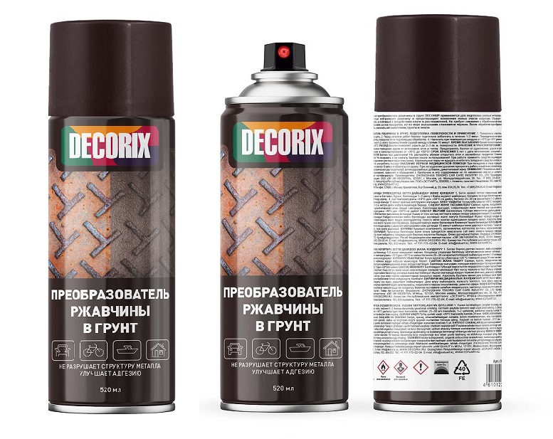 Профессиональный преобразователь ржавчины в грунт DECORIX® применяется для подготовки ржавых металлических поверхностей к покраске. Полностью нейтрализует ржавчину и предотвращает появление новых очагов коррозии. Образует готовый к покраске грунтовочный слой, устойчивый к воздействию влаги и растворителей. Не требует смывания с обработанной поверхности. Во время и сразу после нанесения состав прозрачен, но по мере высыхания становится чёрным. После обработки преобразователем поверхность можно шлифовать, наносить автошпатлёвки, грунты и эмали.