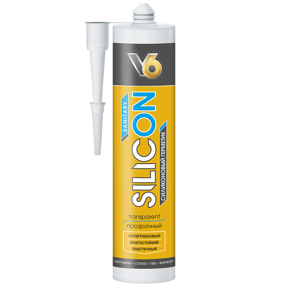 Силикон "V6" Санитарный ПРОЗРАЧНЫЙ, 260 мл., 24 шт.