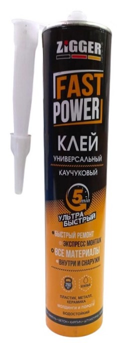 Клей «ZIGGER» FAST POWER, каучуковый ультрабыстрый,бежевый, 380 г, 24шт