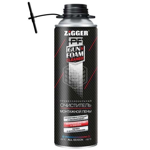 Очиститель монтажной пены ZIGGER представляет собой готовое к применению многофункциональное средство для удаления остатков не отвердевшей пены и полиуретанового клея.