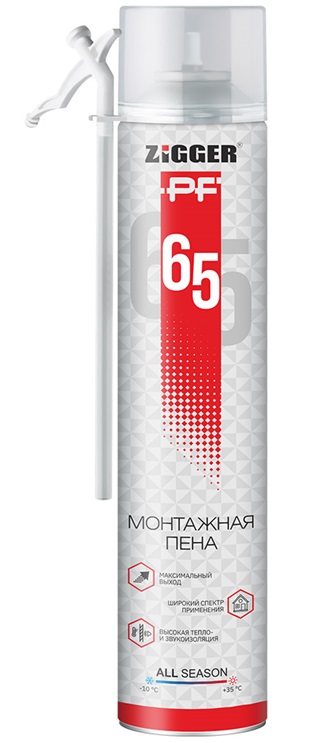 Пена бытовая "ZIGGER PF" 65л всесезонная, 830 мл, 12 шт