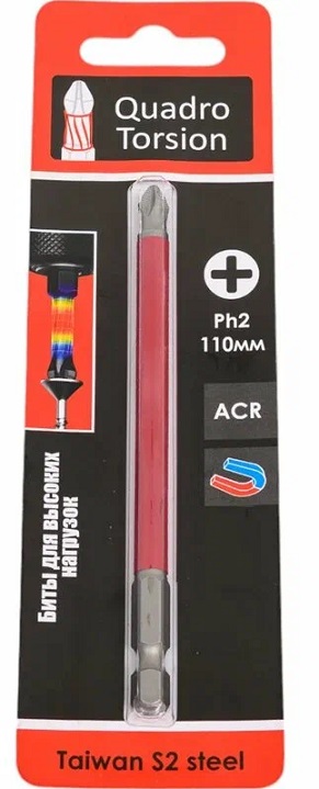 Бита 1/4" E6,3 магн.S2,ACR Ph2-110мм (1 шт/карта) "Quadro Torsion"