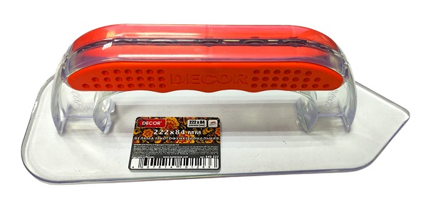 Кельма из прозрачного цельнолитого прочного ABC пластика с прорезиненной анатомической рукоятью используется для нанесения мягких декоративных составов. Прозрачный материал позволяет в моменте видеть нанесение состава, его фактуру и рисунок.