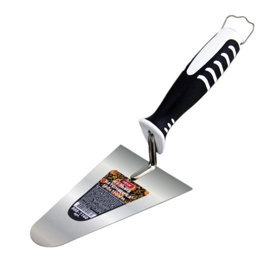Подходит для укладки кирпича и разравнивания бетонных смесей. Нержавеющая полированная сталь. Прорезиненная ручка.