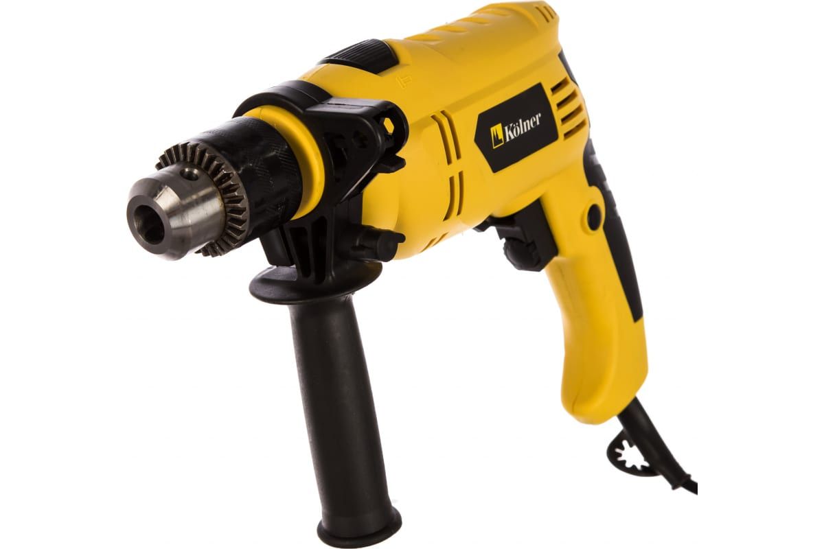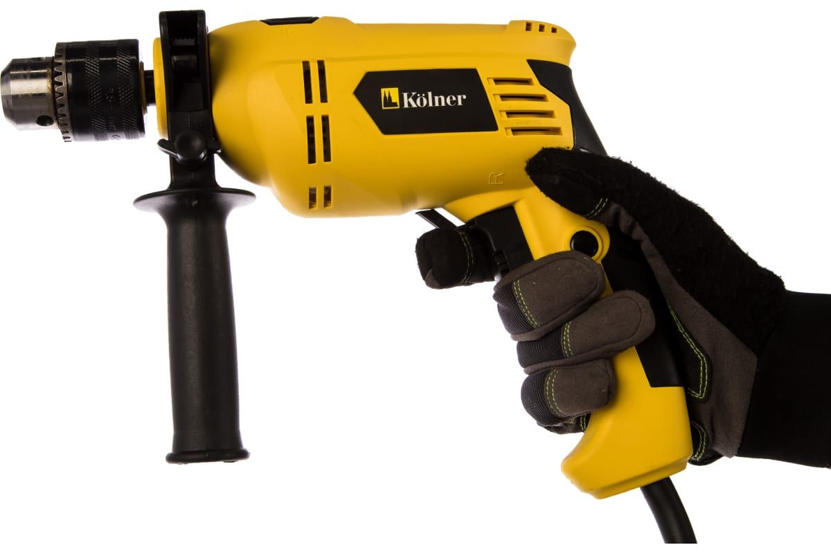 Ударная дрель Kolner KID 600V снабжена надежным ключевым металлическим патроном. С помощью специального колёсика на курке выключателя, можно регулировать число оборотов. На конце рукоятки имеется выступ, благодаря которому рука не соскальзывает во время работы. Дополнительная рукоятка способствует надежному удержанию инструмента.