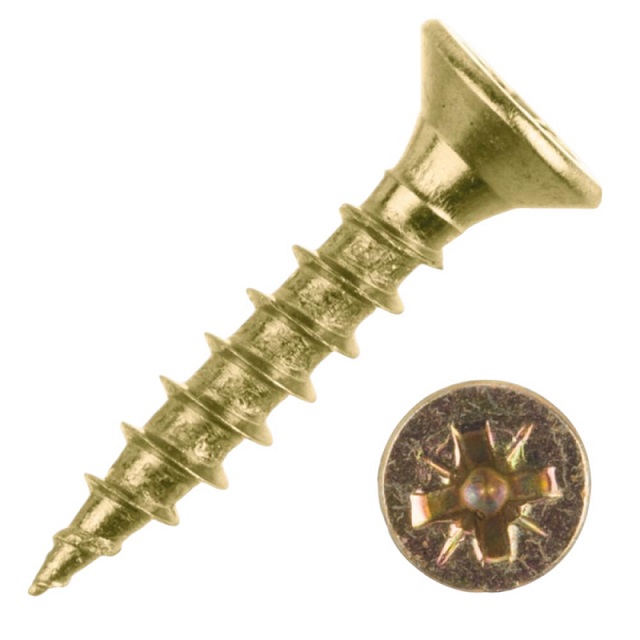 Шуруп жёлтый цинк — универсальный шуруп-саморез с острыми наконечником для соединения дерева, древесностружечных плит и других строительных материалов.