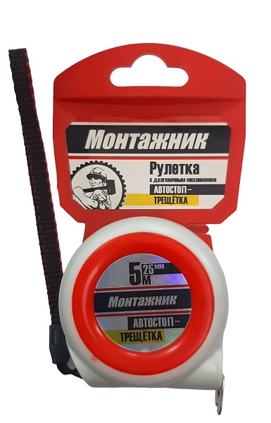 Рулетка с автостопом-трещёткой 3 м х 19 мм "Монтажник" 6шт/уп
