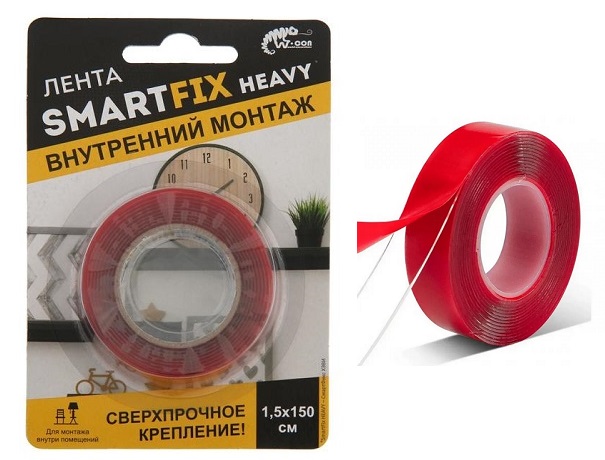 Двусторонняя лента Монтажная Сверхпрочная (Всепогодная) 15мм х 1,5м прозрачная W-СON SmartFix HEAVY /36