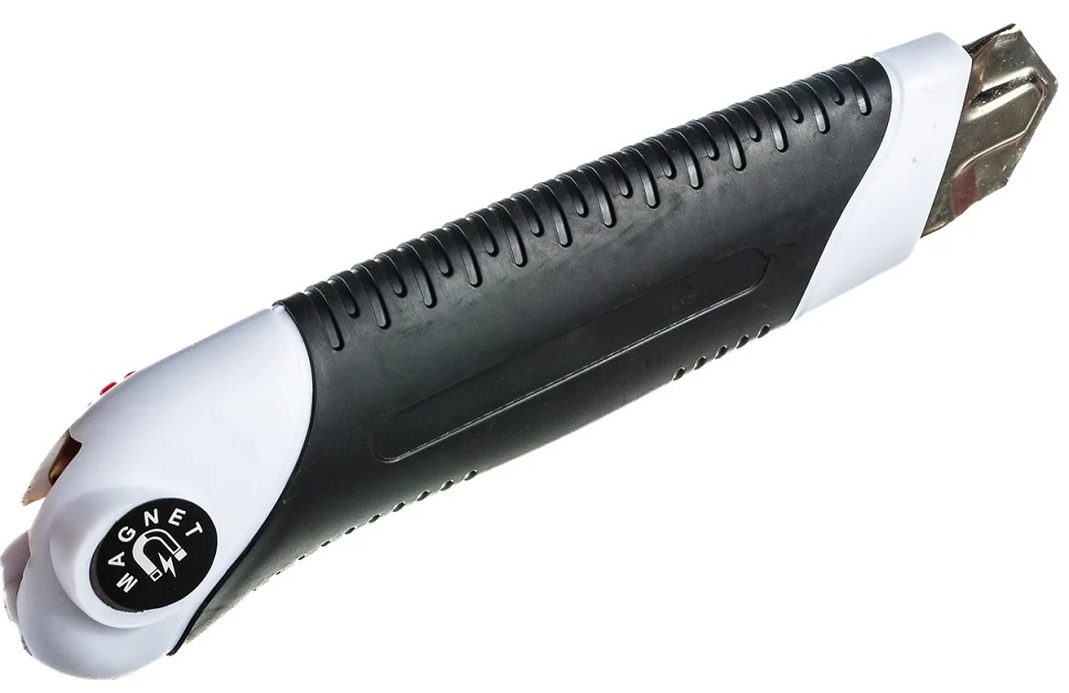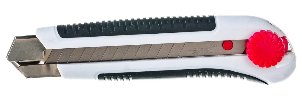 Для разрезания изделий из бумаги, картона и материалов, рез которых не требует применения значительных усилий. Имеет сегментированное лезвие из высокоуглеродистой стали, разбитое на сегменты для быстрого отламывания затупившегося конца. Пластиковый корпус с металлической направляющей лезвия и рифленой поверхностью, предотвращающей соскальзывание руки. Механизм выдвижения и фиксации позволяет быстро зафиксировать лезвие на необходимую длину.
