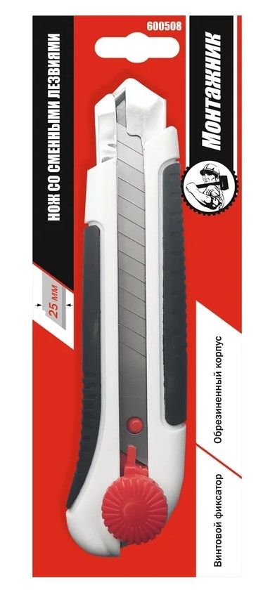 Нож со смен. лезв. 25мм обрезин, винт. фикс."Монтажник"ABS+TPR 12шт/уп