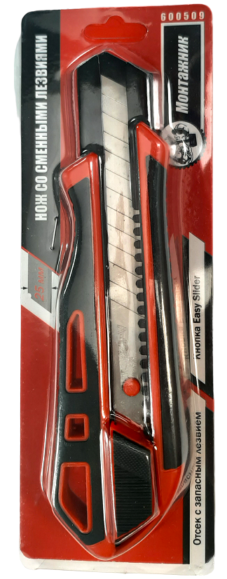 Нож со смен. лезв. 25мм, обрезин, ABS+TPR, запасн. лезв, "Монтажник" 12шт/уп