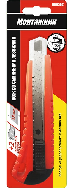 Нож со смен. лезв., 1+2 лезв.18мм, PP пластик "Монтажник" 12шт/уп