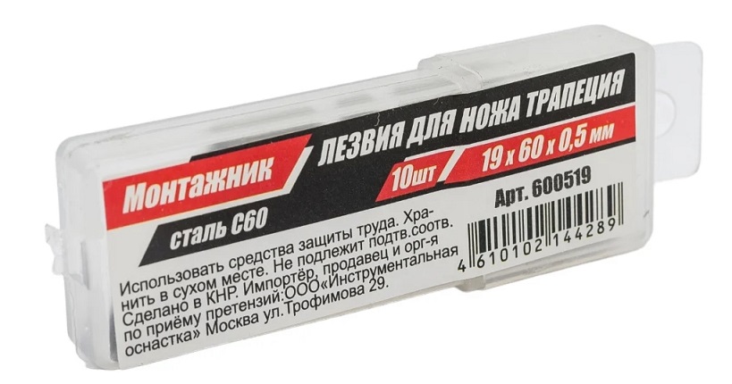 Лезвия для ножей Трапеция 19х60х0,5мм "Монтажник" 10шт/уп