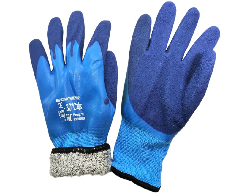 Перчатки ПВХ зимние -30° мех.сине-голубые 12/360