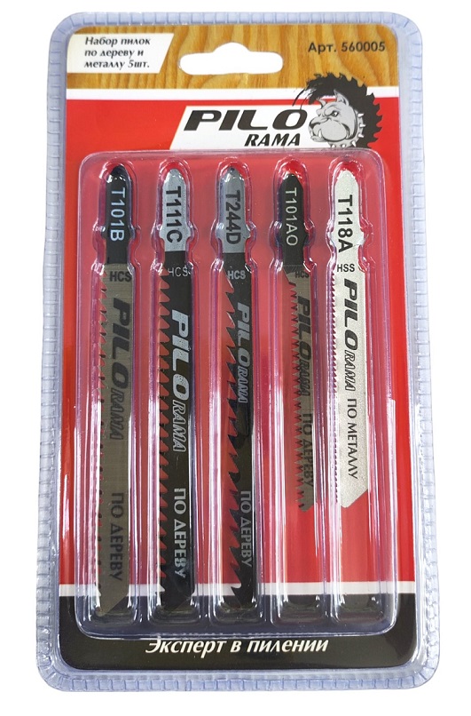 Набор пилок по дер. и мет. 5 шт: T101B, T101AO, T111C, T244D,T118A "Pilorama"