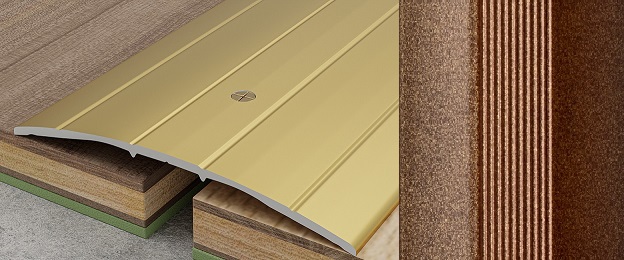Профиль-порог одноуровневый стыкоперекрывающий алюминиевый с открытым креплением. Используется в качестве порожков для напольного покрытия, предназначен для стыковки двух одноуровневых поверхностей. Представляет собой прямой профиль из алюминия гладкий или с зоной рифления, с крепежными отверстями, крепеж в комплекте.