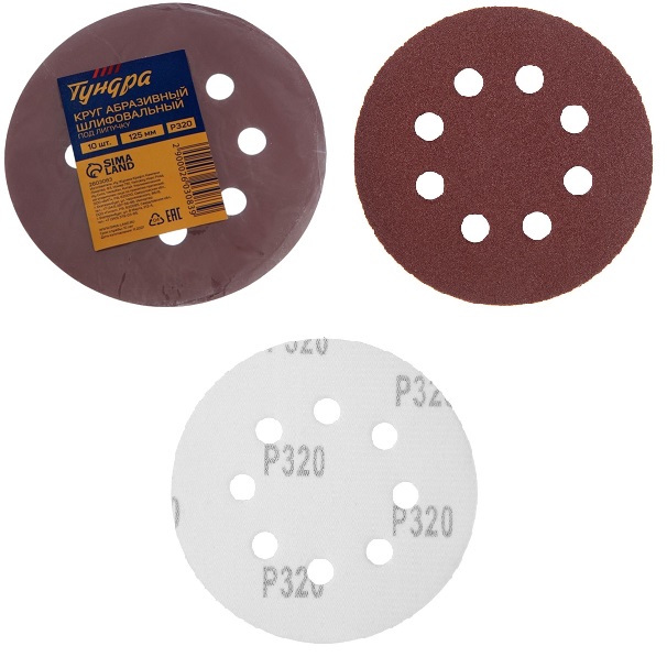 Круг абразивный шлифовальный под "липучку" TUNDRA перфорированный, 125 мм, Р320, 10 шт