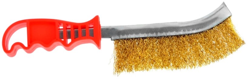 Ручная щетка с пластиковой рукояткой и с проволокой из латуни. Идеальна для удаления ржавчины, краски и грязи с любой поверхности (очистка решеток после костра, очистка ворот и заборов, обслуживание велосипедов и мотоциклов, а также промышленное применение).