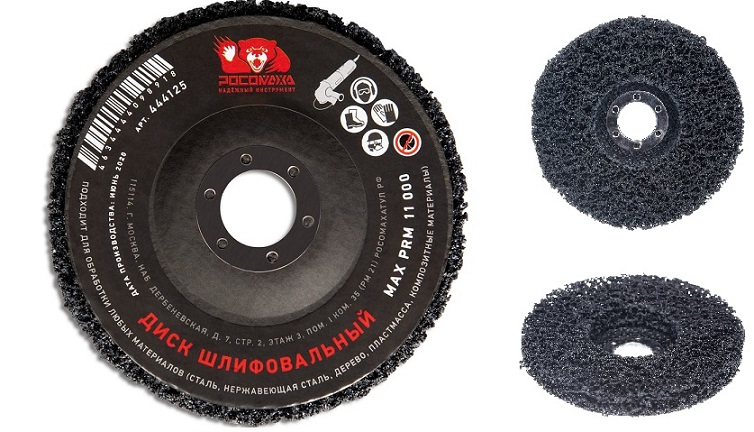 Круг представляют собой чистящее волокно, имеющее очень грубую структуру и состоящее из синтетического волокна и абразива. Открытая волоконная структура диска обеспечивает быстрое шлифование с очень незначительным засаливанием. Безопаснее чем проволочные щётки.