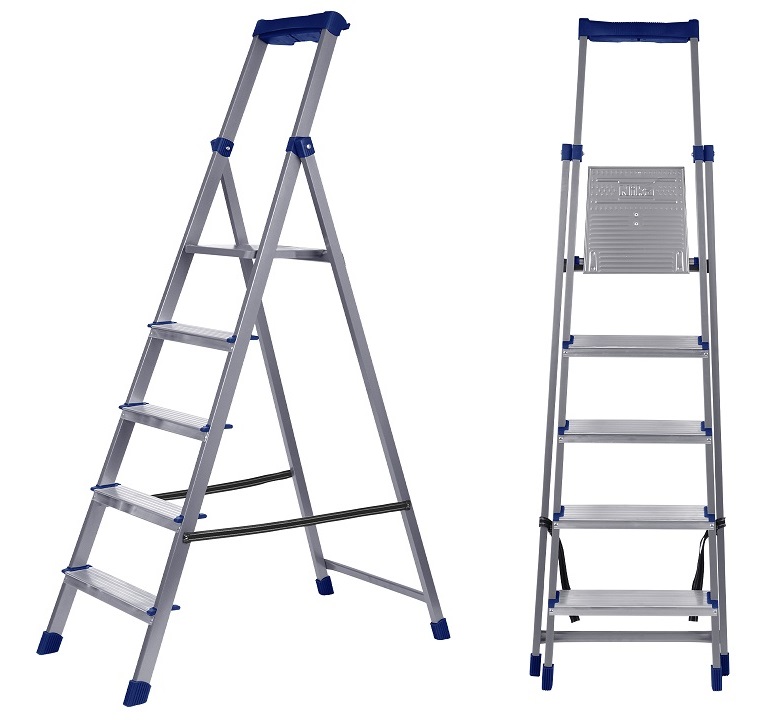 Металлическая стремянка для выполнения хозяйственно-бытовых работ. Удобна в использовании на рыхлых поверхностях.