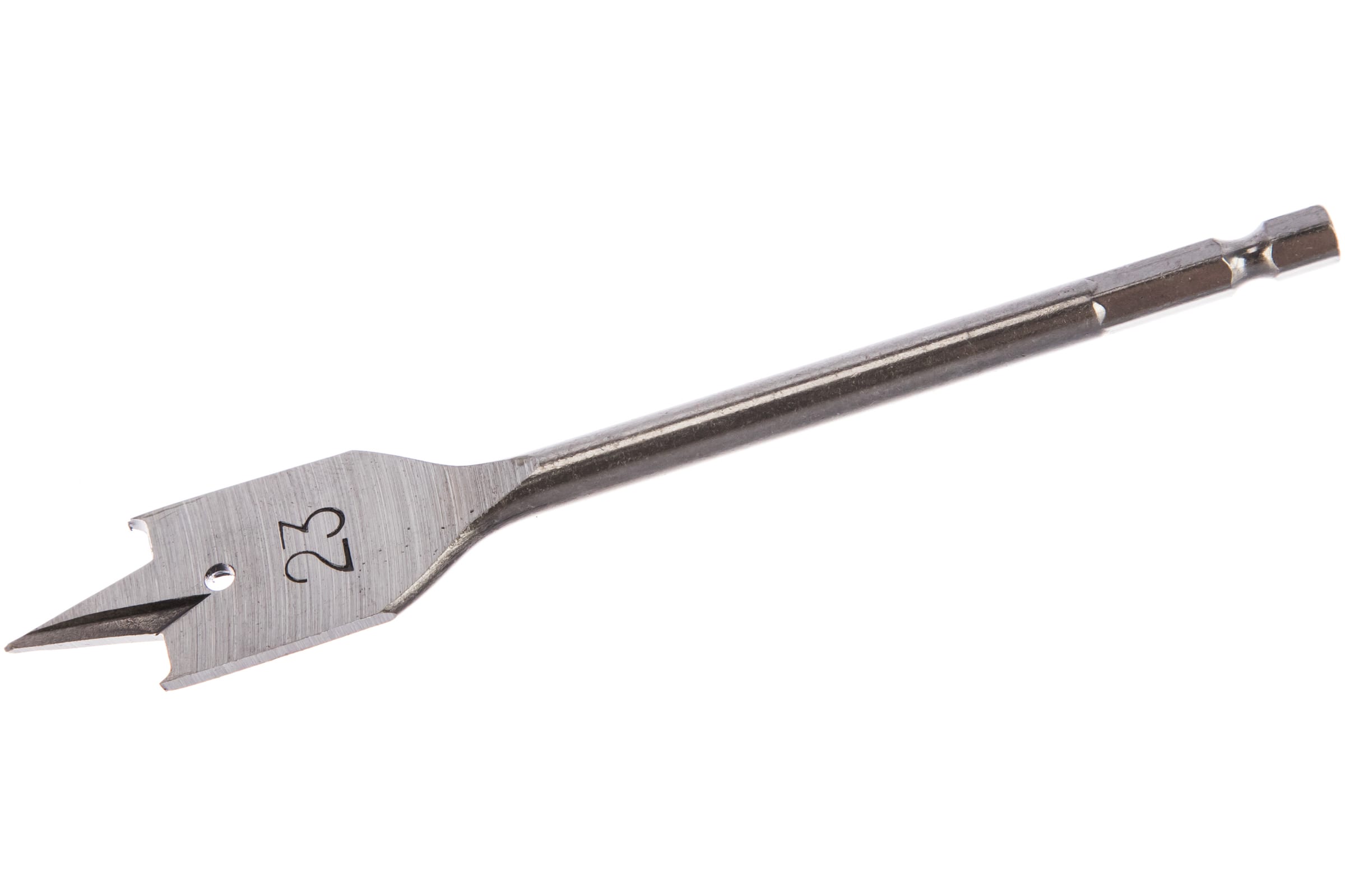 Сверло произведено из прочной высокоуглеродистой стали, закаленной в рабочей части. Оснащено очерчивающим остриём, что позволяет получить ровное, цельное отверстие. Шестигранный хвостовик обеспечивает надежное закрепление в патроне.
