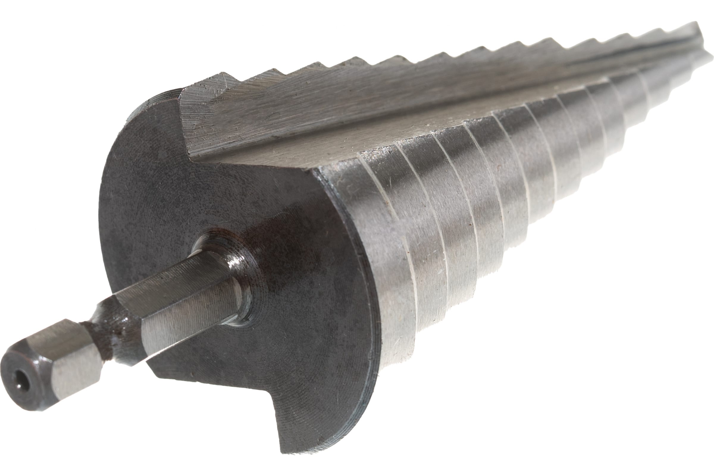 Сверло по металлу шаговое Hardcore 142635 предназначено для получения отверстий различного диаметра без перестановки режущего инструмента.