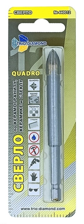 СВЕРЛО ПО КЕРАМИКЕ И СТЕКЛУ 12 мм, Квадро (Trio-Diamond)